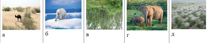 Встановіть відповідність між природою зоною (1 – 5) і краєвидом (а –