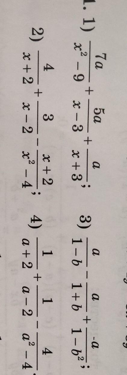 7a 6.51. 1)²-9 2) 4 x + 2 + + Ба x - 3 + a x + 3 - ; 3 x +2 x-2 x²-4 ; 3) 4) a 1-b 1 a + 2 a -a 1+b 1-6² + + 1 4 a - 2 a² - 4 -