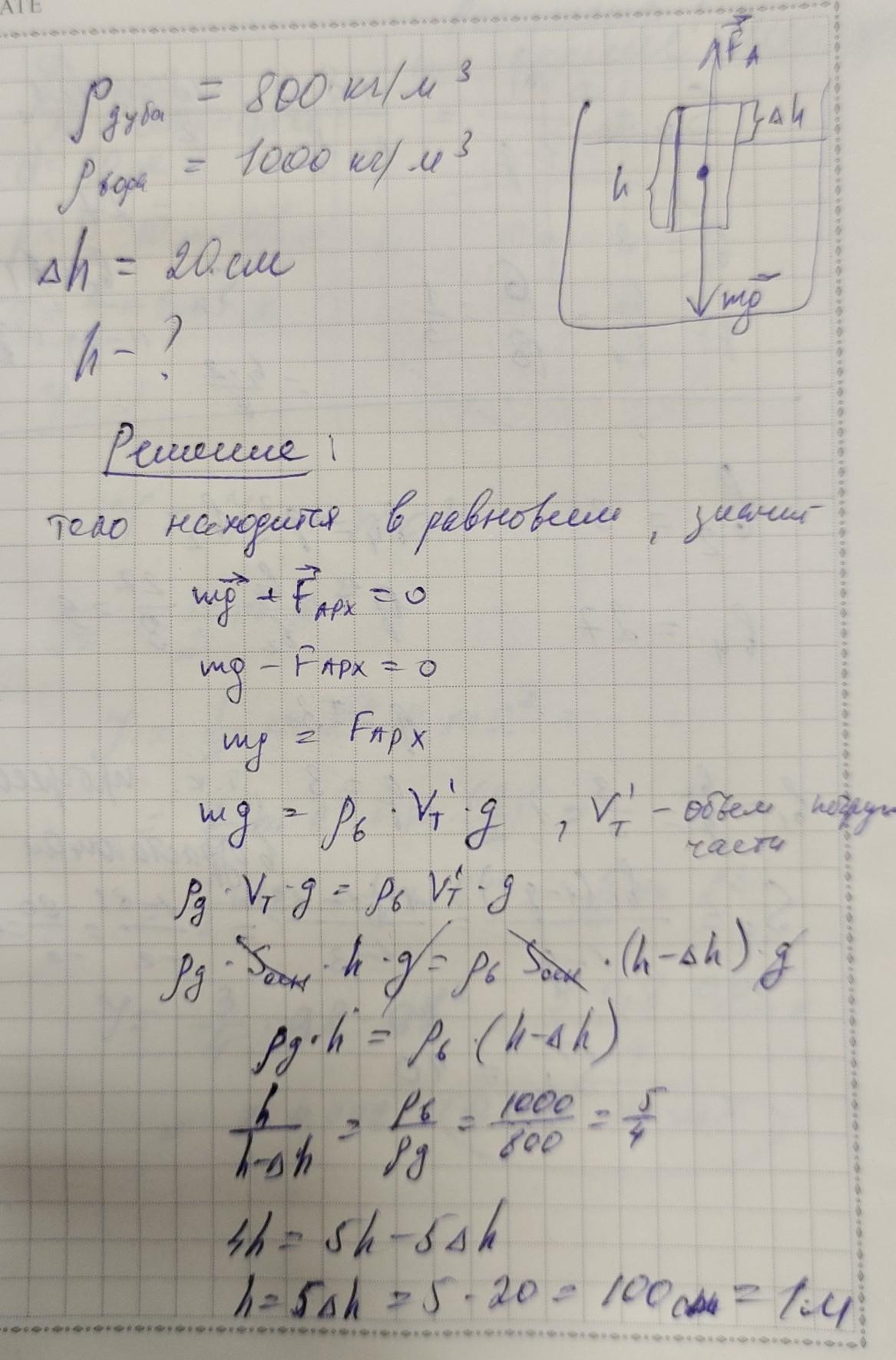 Знайдіть товщину дубового бруса правильної форми, який плаває, якщо його висота над поверхнею води 20 см.