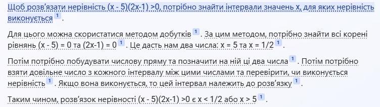 Из полученных результатов можно сделать вывод, что неравенство выполняется на интервалах (-бесконечность, 1/2) и (5, +бесконечность). Ответ: