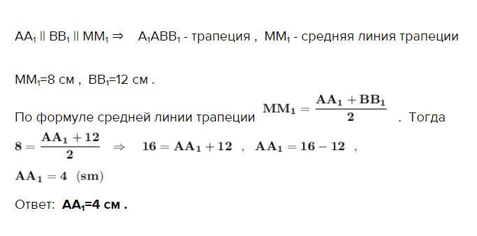 АА₁ || BB₁ || ММ₁ ⇒ A₁ABB₁ - трапеция , ММ₁ - средняя линия трапеции .