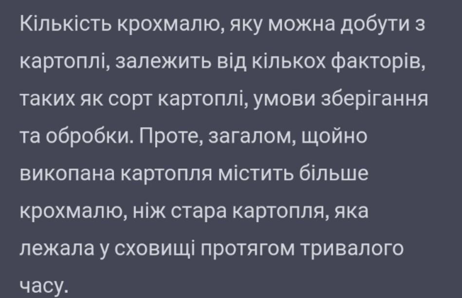 із якої картоплі можна добути більше крохмалю: із щойно викопаної чи такої, яка всю зиму перебула в овочесховищі? Відповідь обгрутуйте