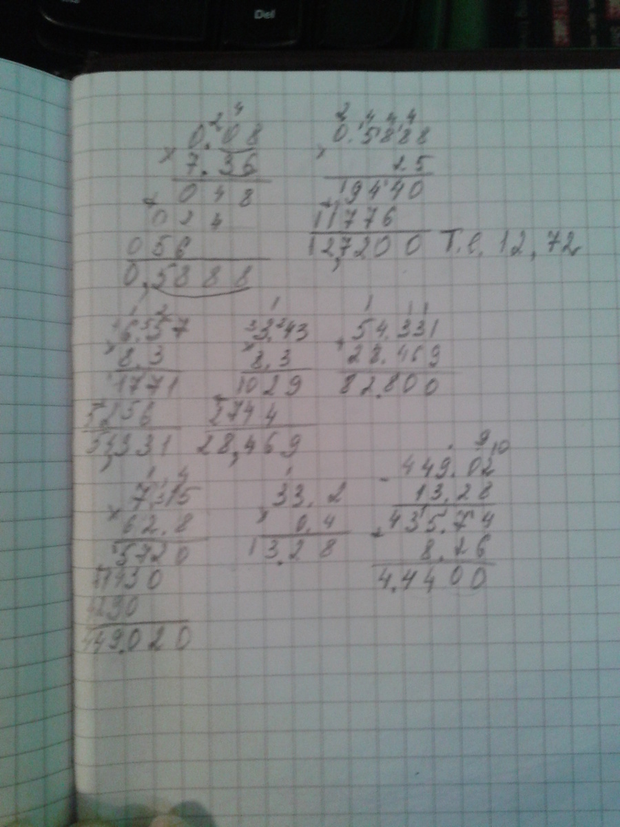 в) 62,8*7,15-33,2 *0,4+8,26=449,02-13,28+8,26= 435,74+8,26=444