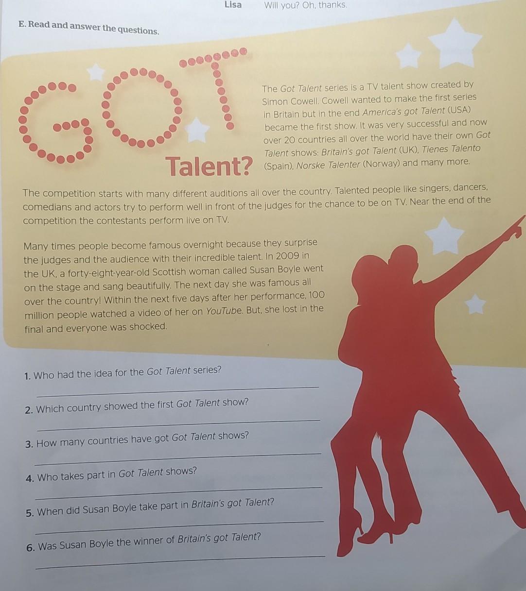 5. In 2009 Susan Boyle took part in Britain's got Talent.
