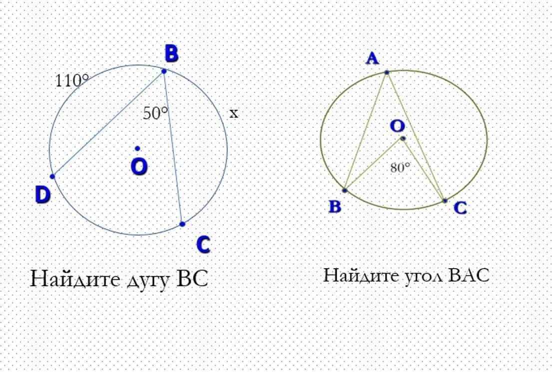2) Градусная мера ∠ВАС равна половине градусной меры дуги, на которую он опирается .