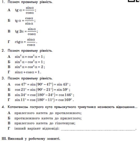 1. А ( тангенсом кута називається відношення синуса кута до його косинуса)