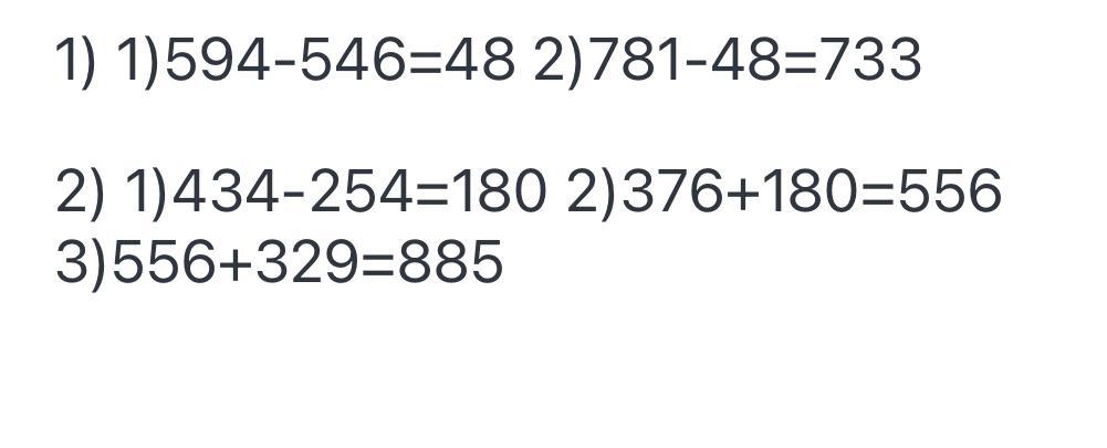 2) 1)434-254=180 2)376+180=556 3)556+329=885
