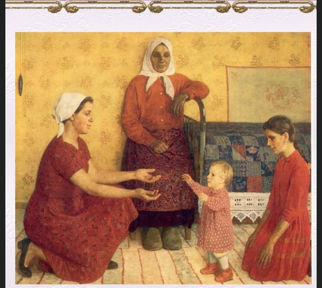 Мати грається з донькою та її сестрою. Та за цим спостерігає бабуся сидячи на стільці біля ліжка у затишній кімнаті з жовтими стінами.
