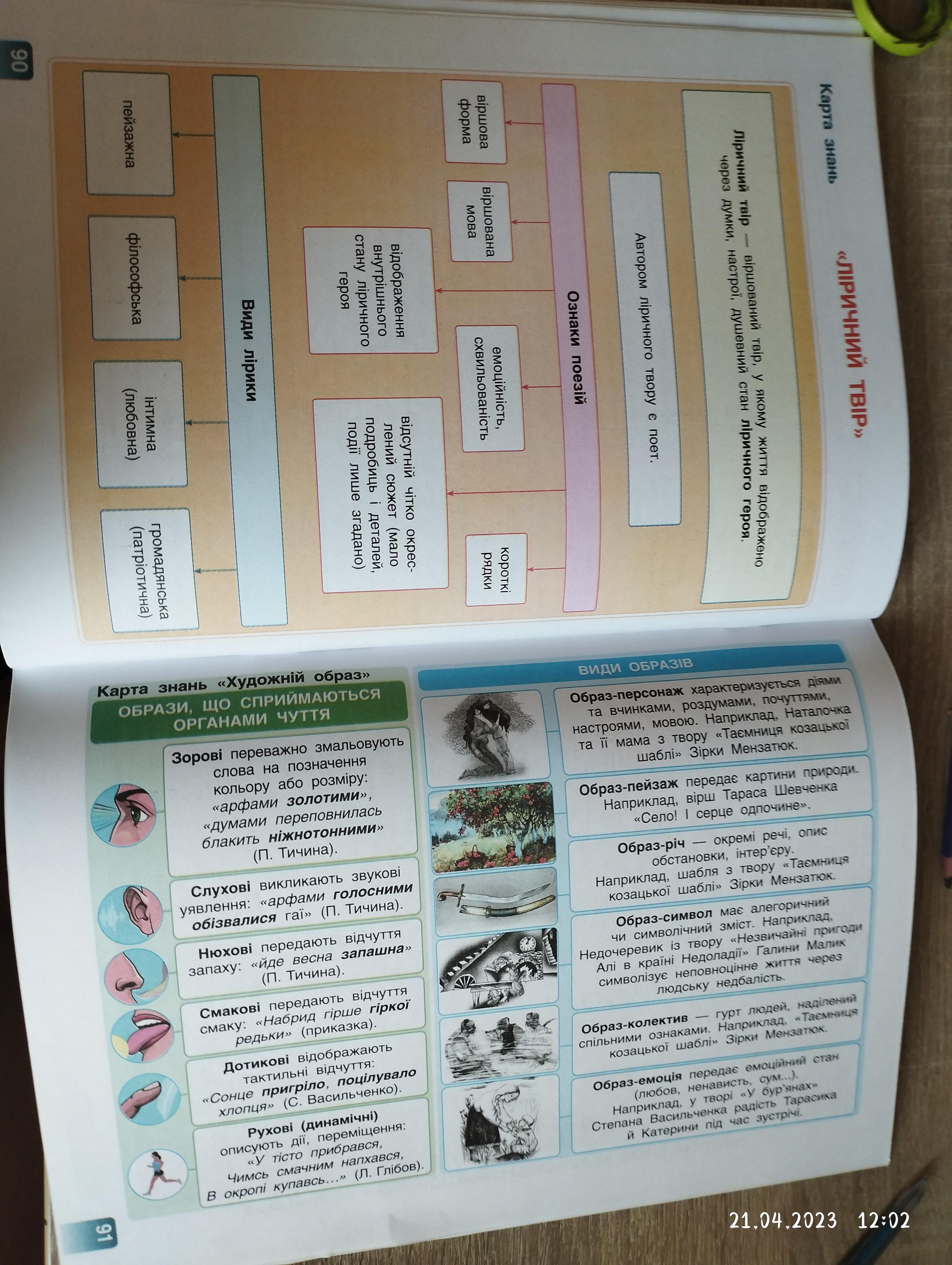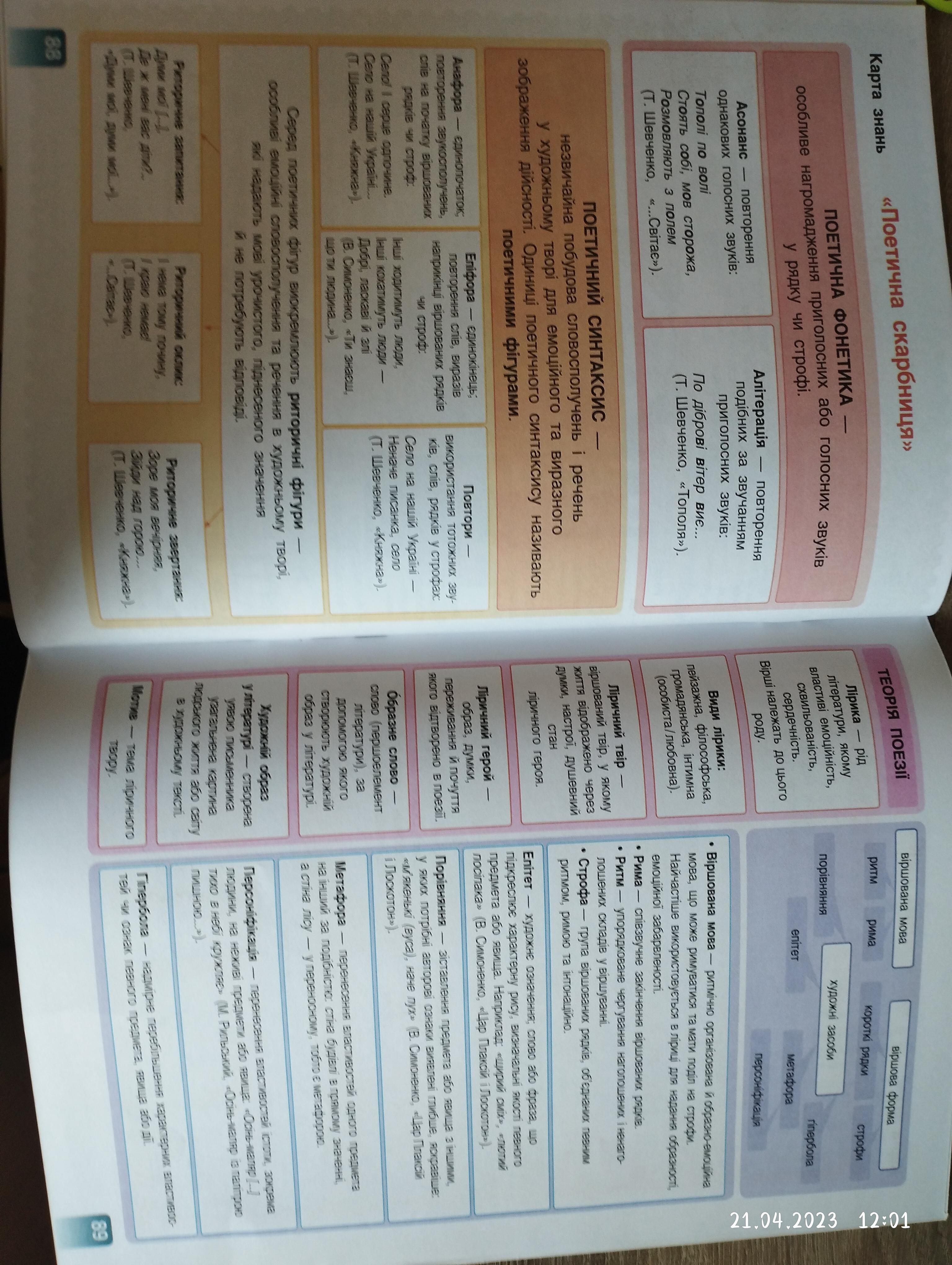 2. Заповни таблицю, послуговуючись текстами поезій та картою знань «Художній об- раз» (с. 91). За потреби скористайся картою знань на с. 88-89. Тропи (художні засоби) Риторичні фігури Поетична фонетика Образи, що сприймаємо органами чуття допоможіть будь ласка