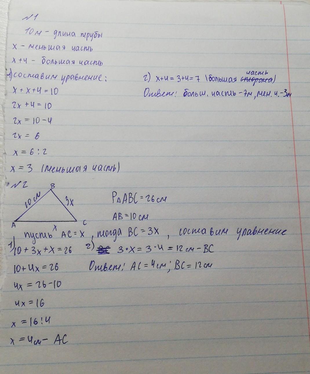 1) Трубу длиной 10 м разрезали на две части, одна из кото- рых оказалась на 4 м короче другой. Найдите длины обе- их частей трубы.