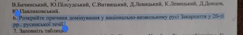 Розкрийте причини домінування у національно-визвольному русі Закарпаття у 20-ті рр.. русинської течії.