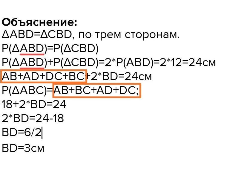 Р(∆АВD)+P(∆CBD)=2*P(ABD)=2*12=24см