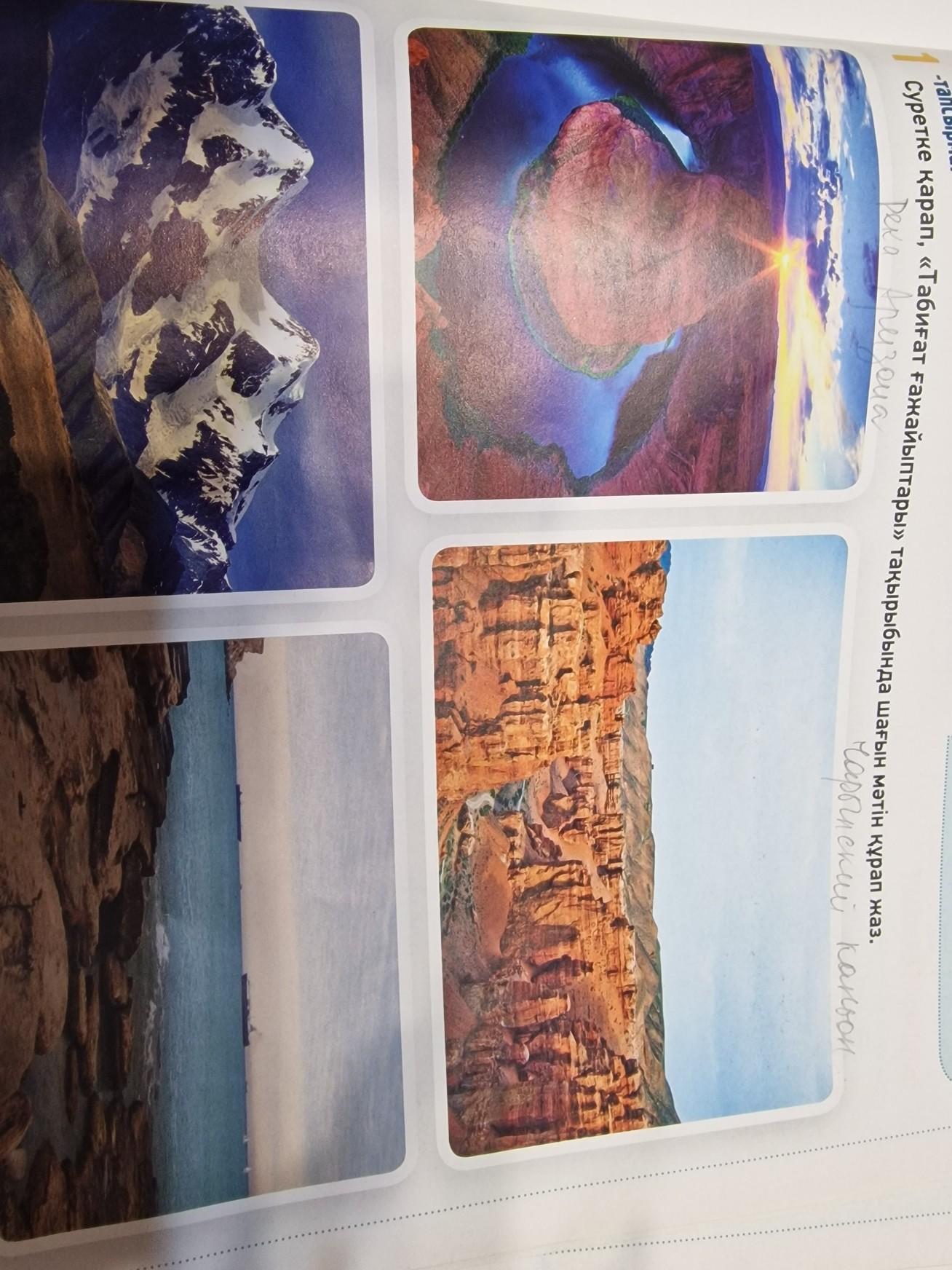 Суретке қарап,Табиғат ғажайыптары тақырыбында шағын мәтін құрап жаэ. нужно составить по 2 предложения. по картинкам