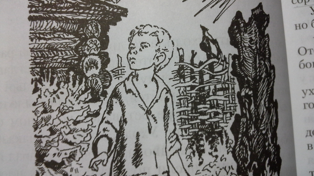 рассказ Никита автор Есенин художник Л.П Дурвсов. Отметьте особенности композиции рисунка, почему художник на переднем плане изобразил героя рассказа, а на заднем дом и солнце