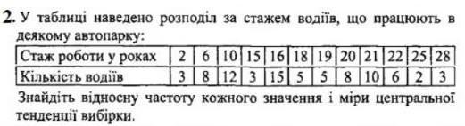 Меры центральной тенденции - средний стаж водія Хср=∑(хі*fi)/∑fi=(2*3+6*8+10*12+15*3+16*15+18*5+19*5+20*8+21*10+22*6+25*2+28*3)/(3+