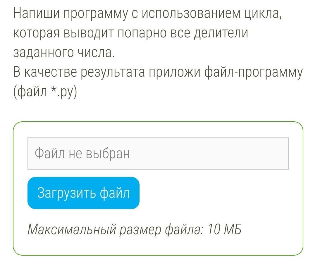 Напиши программу с использованием цикла, которая выводит попарно все делители заданного числа. в качестве результата приложи файл-программу (файл *.py)
