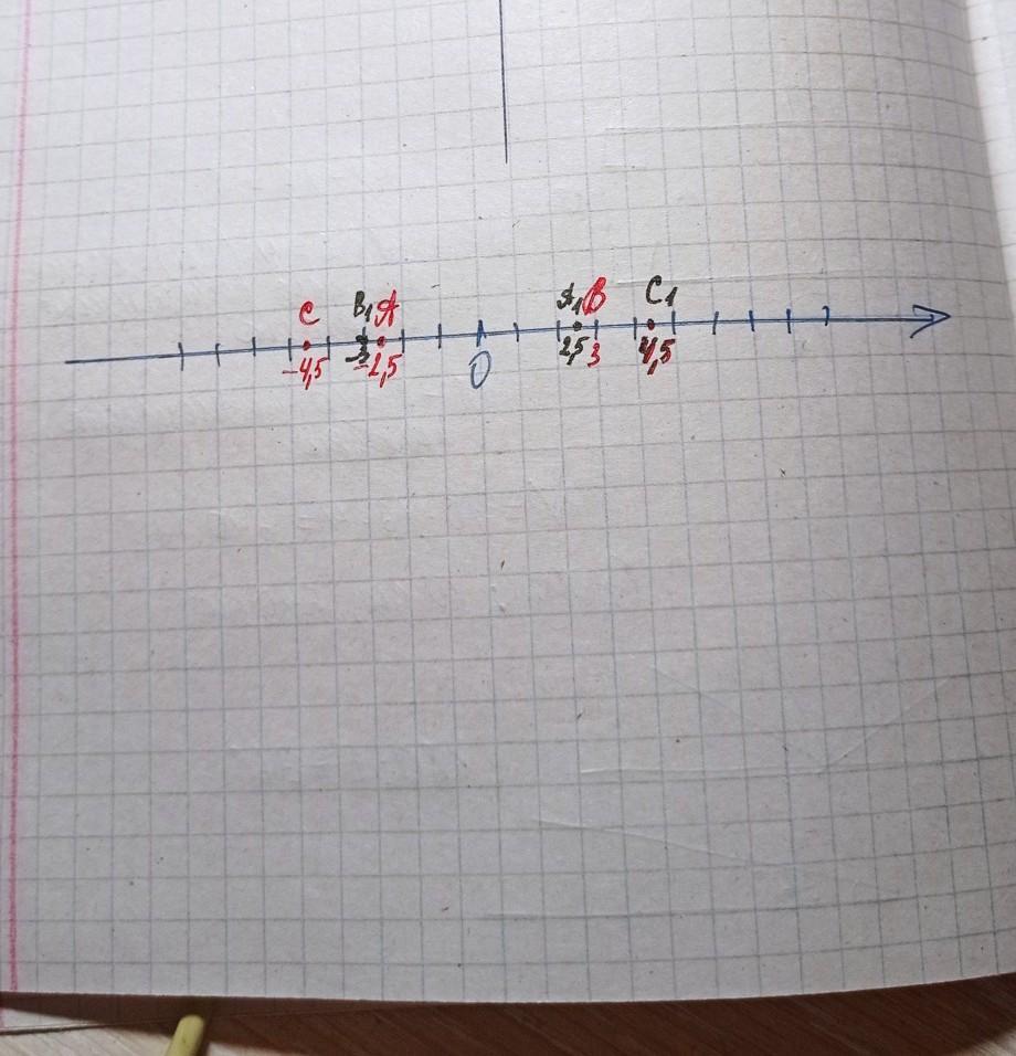 Отметь на координатной прямой точки А(-2,5), B(3) C(-4,5) и точки, имеющие противоположные координаты. Картинку пожалуйста! Именно координатную прямую!