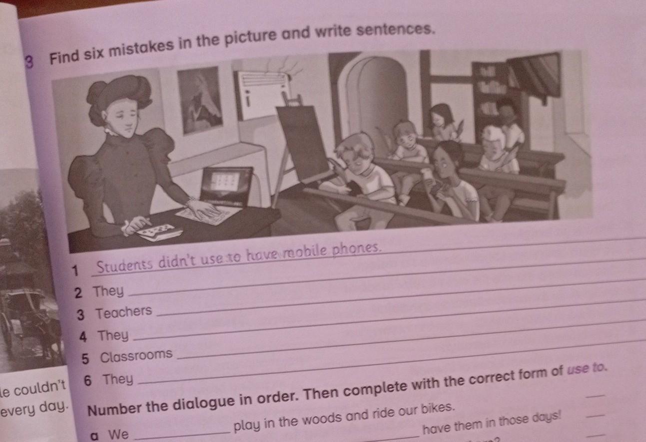 англійська, швидко!! номер 3: Find six mistokes in the picture and write sentenses.