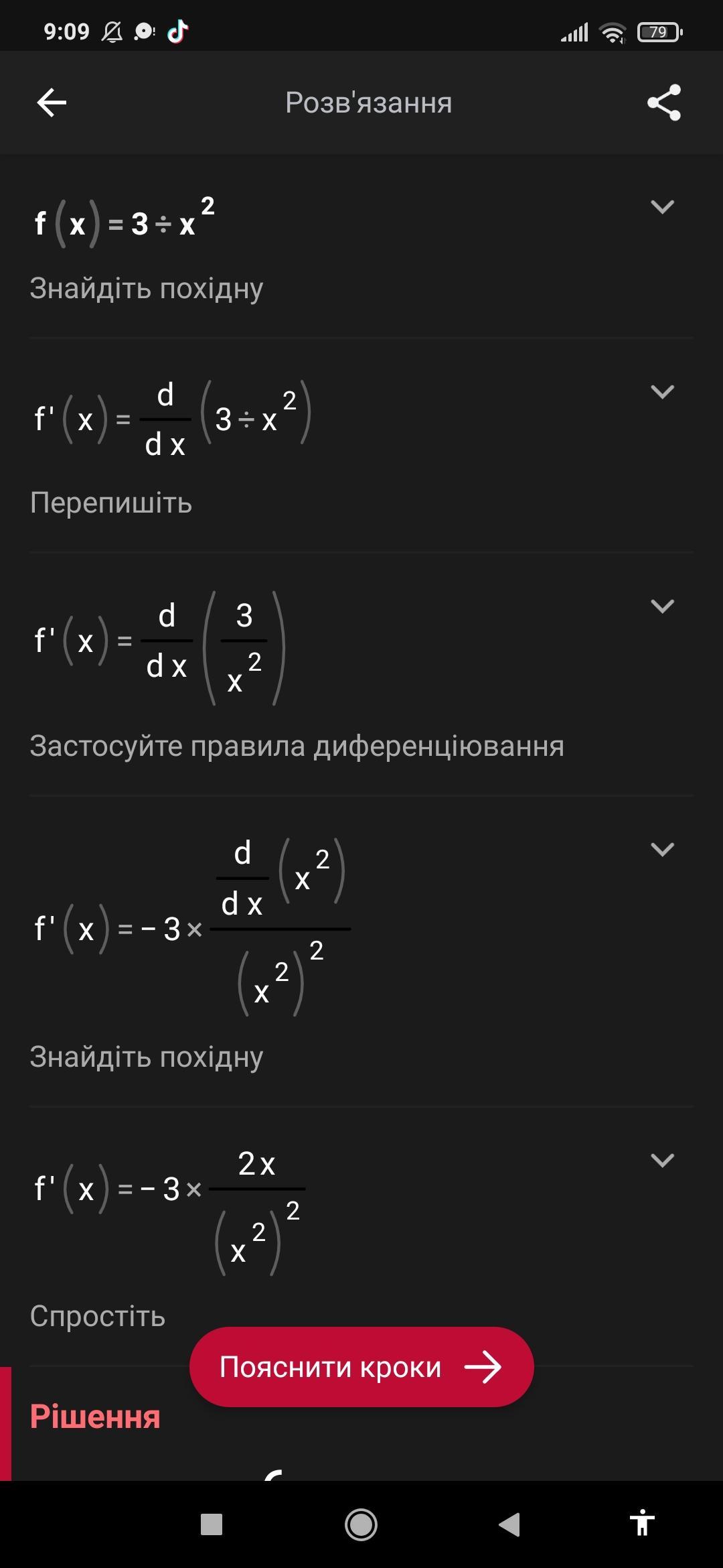 f`(x)= мінус шість поділити на ікс і 3 , не хоче писати числами