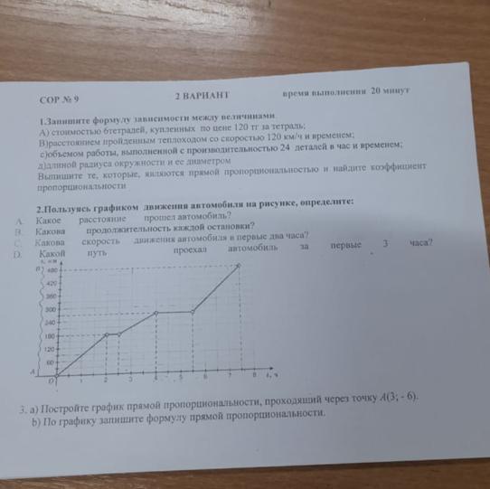 2. Пользуясь графиком движения автомобиля на рисунке, определите: