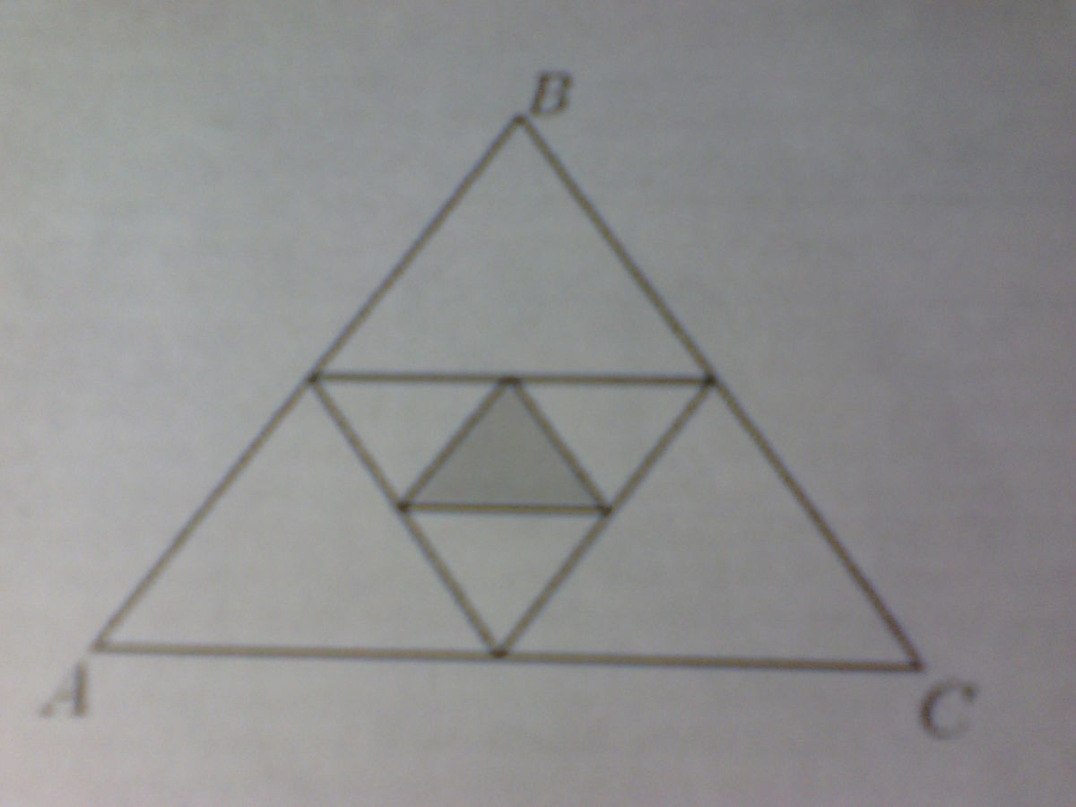 1 способ: Треугольники подобны ( т.к. они равносторонние и все углы по 60 градусов). треугольник АВС разбит на 4 равносторонних треугольника. найдем их сторону: периметр АВС = 24 см. периметр делим на 6 частей, получаем 4 см, это сторона вписанного треугольника, следовательно сторона закрашенного треугольника 2 см, из этого периметр = 6 см. 2 способ: из 1го способа закрашенный треугольник в 4 раза меньше АВС, следовательно периметр в 4 раза меньше. 24/4=6 см.