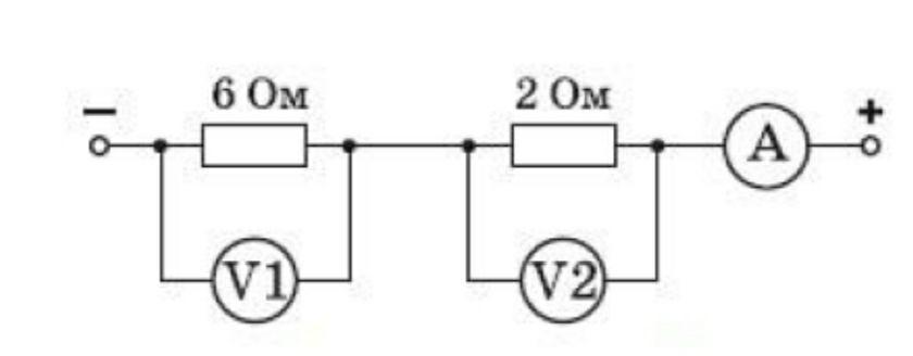 Перший вольтметр (див. рисунок) показує напругу 18 В. Що показують другий вольтметр?