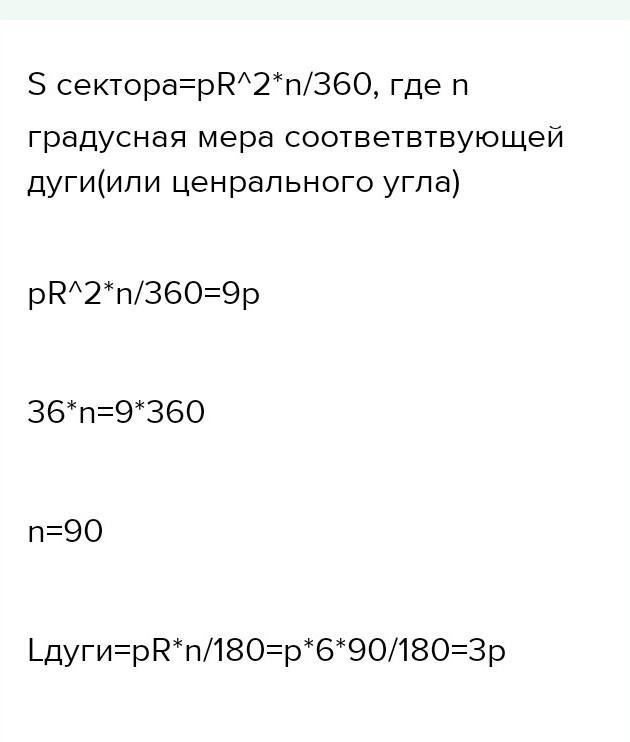 площадь кругового сектора окружности радиуса 6см равна 9Псм два в квадрате. Найдите длинну соответствующей дуги. Ответ округлите до двух знаков после запятой