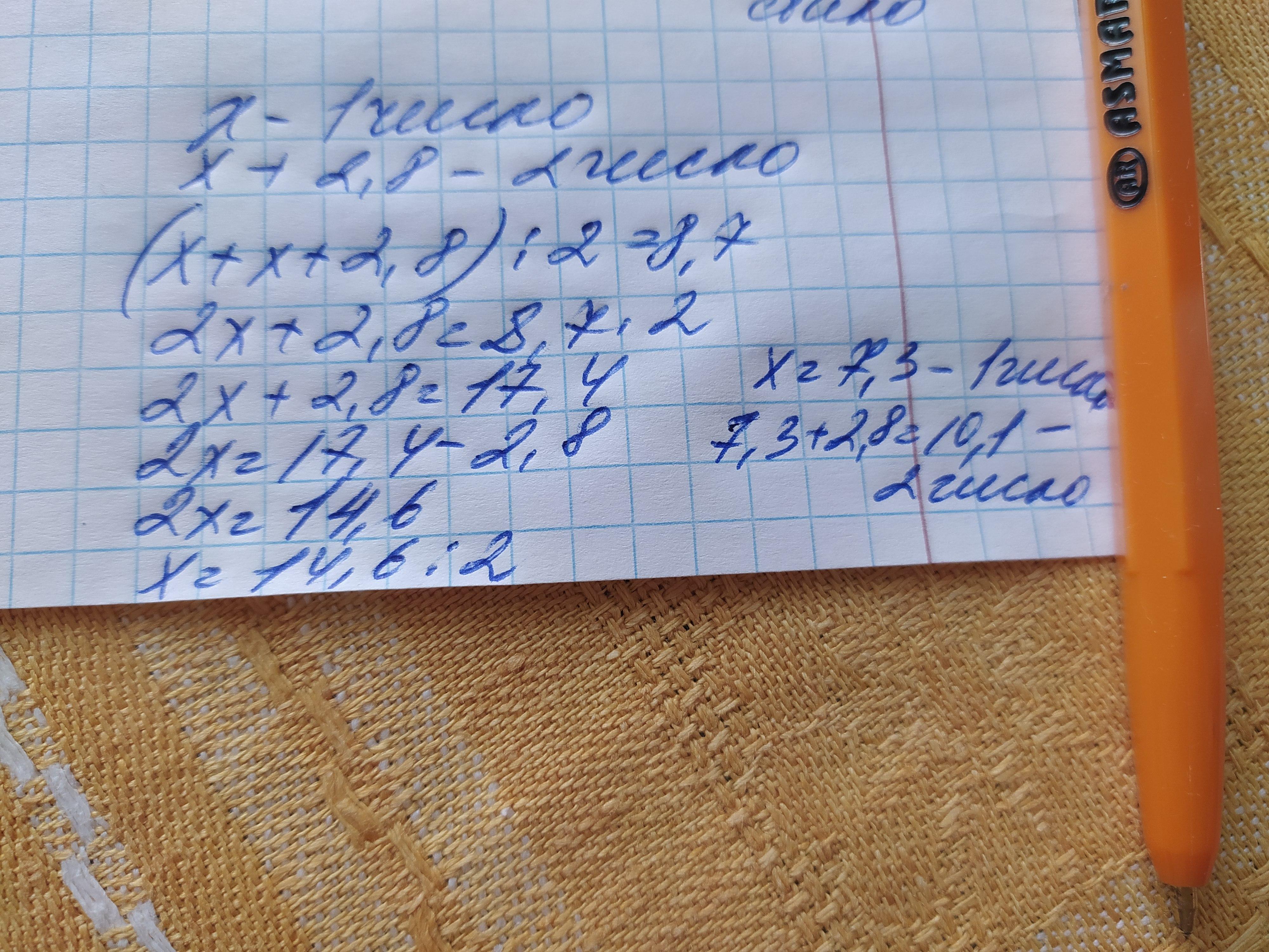 Знайди ці числа, якщо одне з них на 2,8 більше другого.