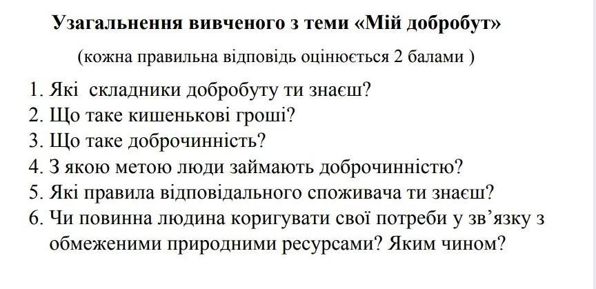 1. Складниками особистого добробуту є прагнення бути задоволеним життям, турбота про фізичне, психічне та соціальне здоров'я й прийняття стійкого способу життя.