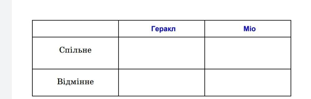 Відповідь:Спільне:сильні,розумні,горді,хитрі.відмінне:Геракл-вмер,мав багато пригод,мав жінку,ворогом була жінка Зевса.