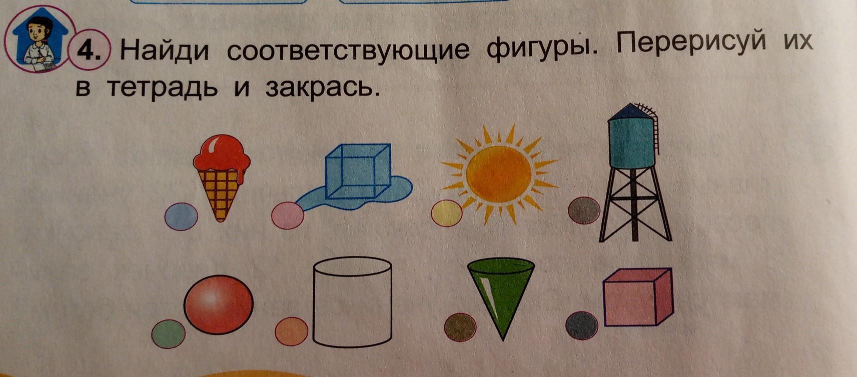4. Найди соответствующие фигуры. Перерисуй их в тетрадь и закрась. 2 класс Математика