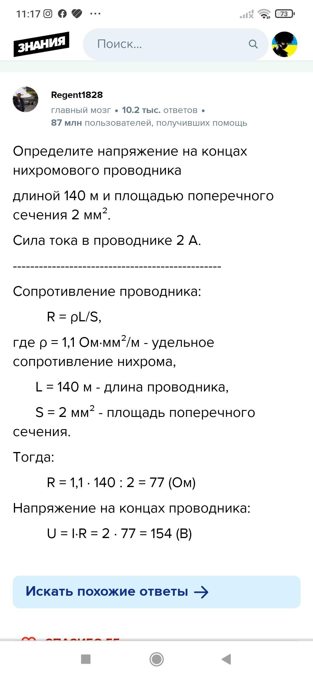 Через ніхромовий провідник довжиною 140 м та площею поперечного перерізу 2 мм² протікає струм силою 2 А. Якою є напруга на кінцях провідника?