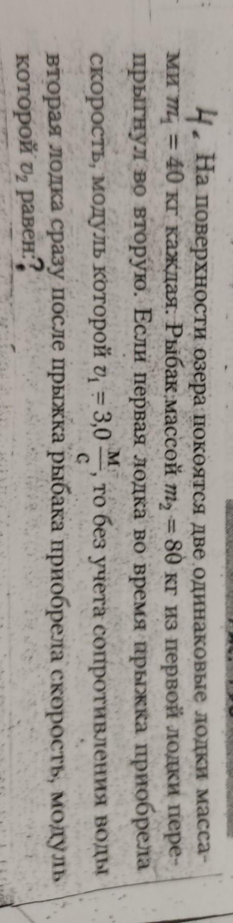 Поскольку вторая лодка начинает двигаться после прыжка рыбака, то её скорость равна искомой скорости v2':