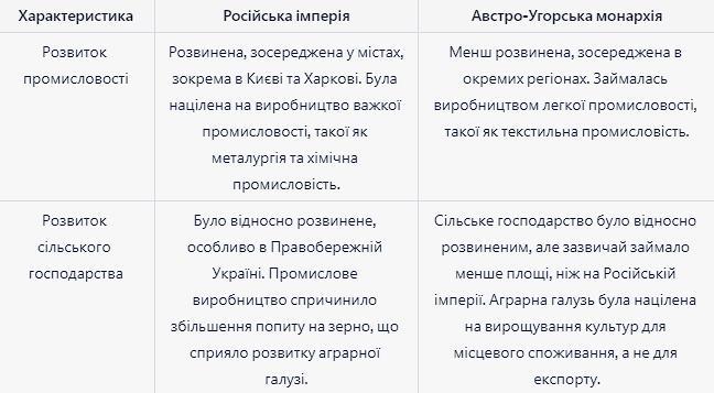 Складіть порівняльну таблицю «Розвиток промисловості й сільського господарства українських земель на початку XX ст.».