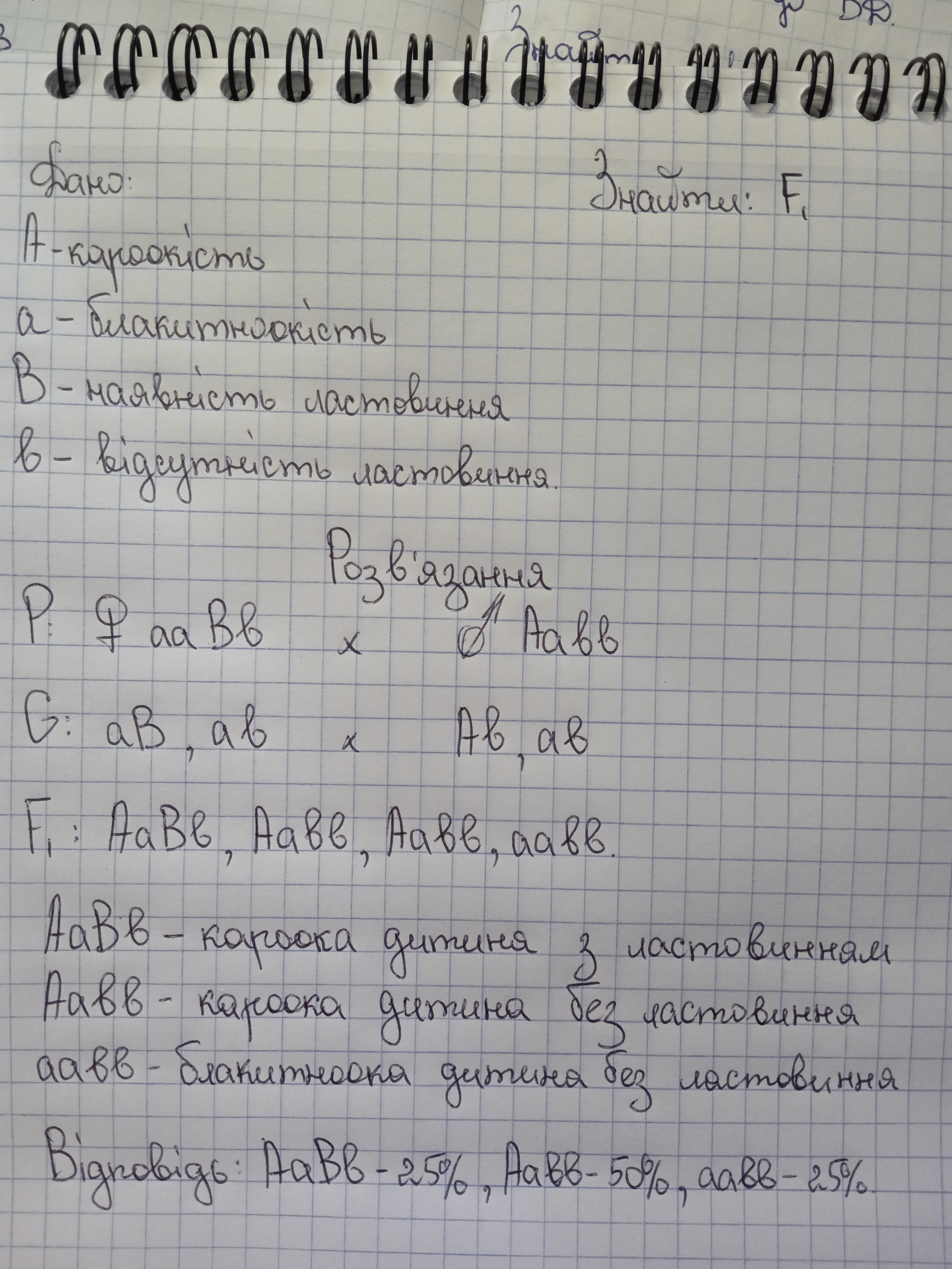 Визначте, яких вони матимуть дітей, якщо чоловік гетерозиготний за ознакою кароокості, а жінка – гетерозиготна за ознакою ластовиння.