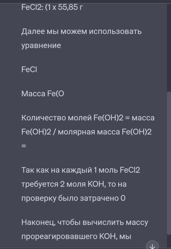 3 3. У результаті взаємодії ферум(II) хлориду з калій гідроксидом утворилося 18г осаду. Обчисліть масу калій гідроксиду що прореагував