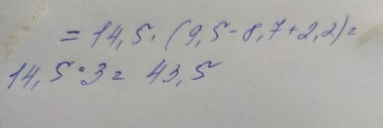 14,5×9,5-14,5×8,7+14,5×2,2 умножаем числа