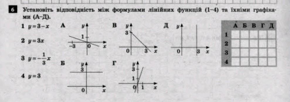 - Так как все приведенные функции - линейные, то для того, чтобы найти график функции, нам достаточно подставить в эту функцию 2 произвольных аргумента х и сопоставить их значения y с приведенными графиками. Если эти точки (x, y) лежат на "линии" графика, то это значит, что он принадлежит нашей функции.