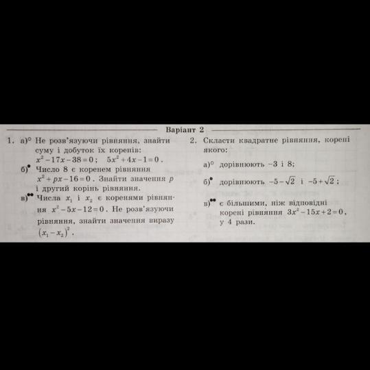 1 . a ) x² - 17x - 38 = 0 ; б ) 5x² + 4x - 1 = 0 ;
