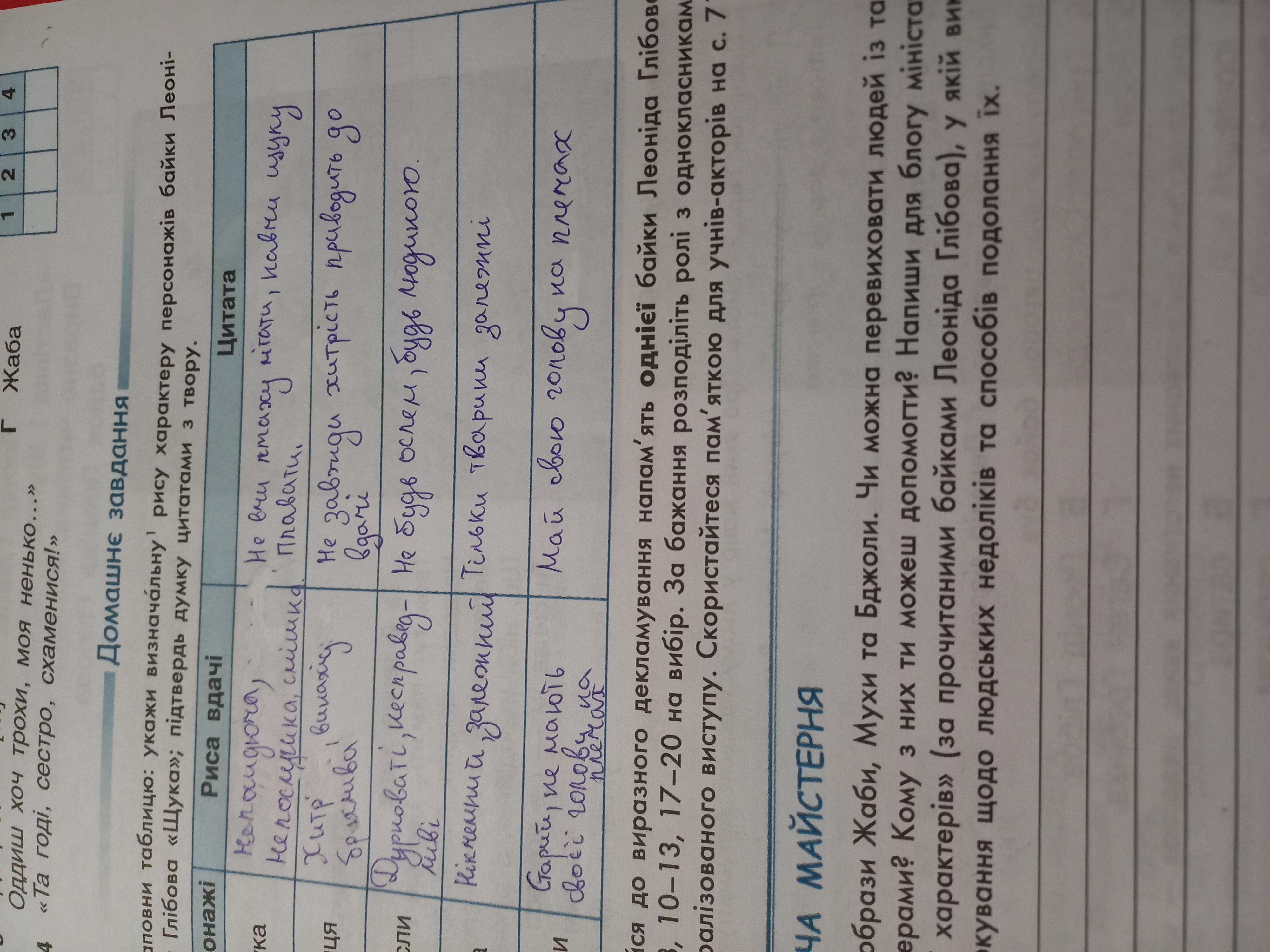 1.заповни таблицю: укажи визначальну рису характеру персонажів байки Леоніда Глібова «Щука»; підтвердь свою думку цитатами з твору.