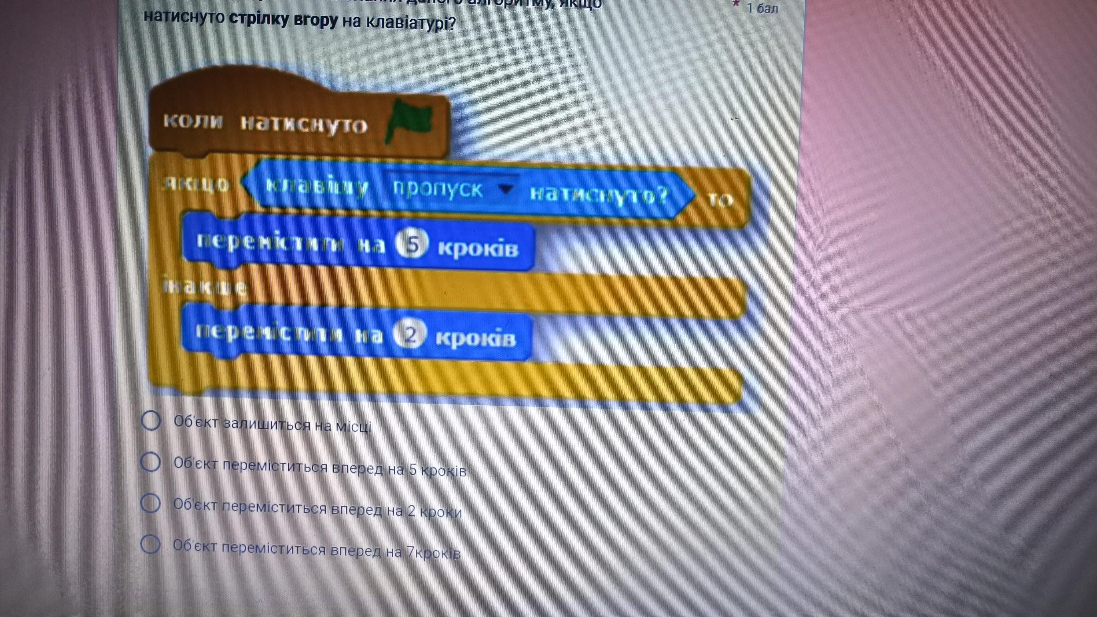 Якими буде результат виконання даного алгоритму,якщо натиснуто СТРІЛКУ ВГОРУ на клавіатурі?