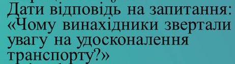 Ответ:Винахідники звертали увагу на удосконалення транспорту тому, що потрібно було долати великі відстані та перевозити великі вантажі.