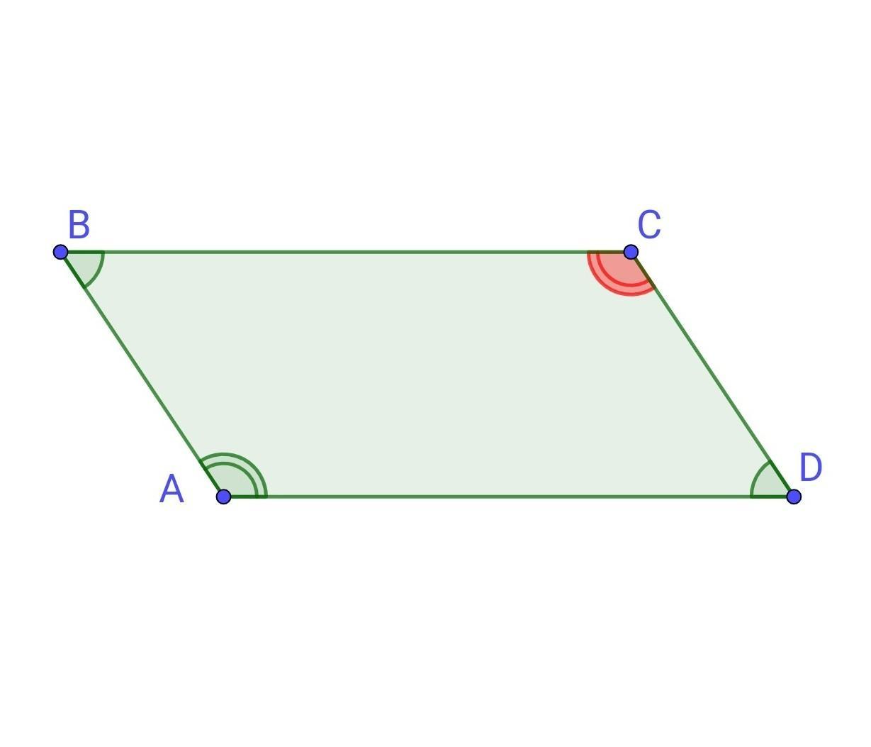 - Сумма углов, прилежащих к одной стороне параллелограмма, равна 180°.