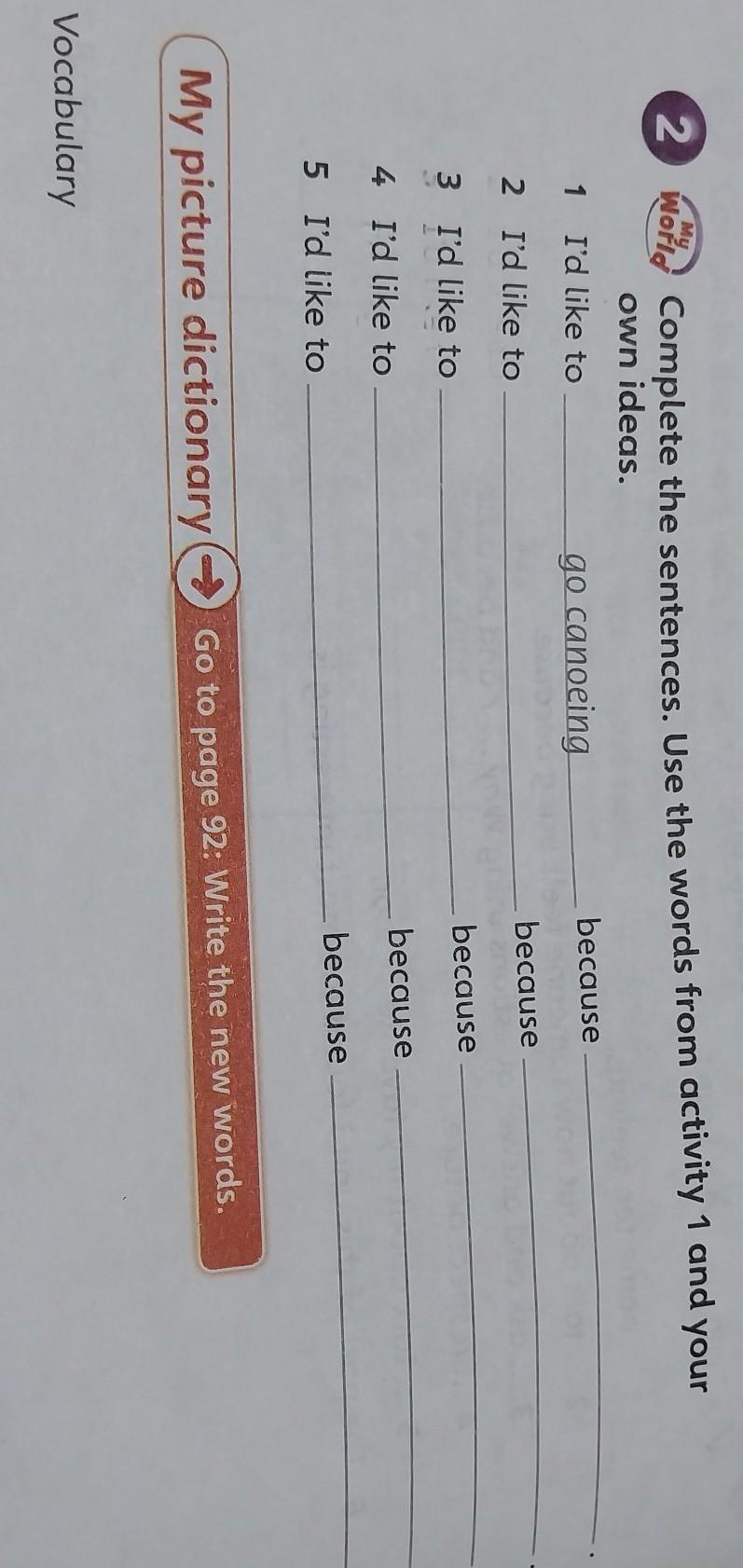 1. Я бы хотел покататься на каноэ, потому что это интересно
