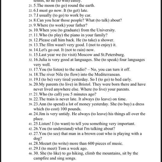 46. 30. She (to like) to go hiking, climb the mountains, sit by the