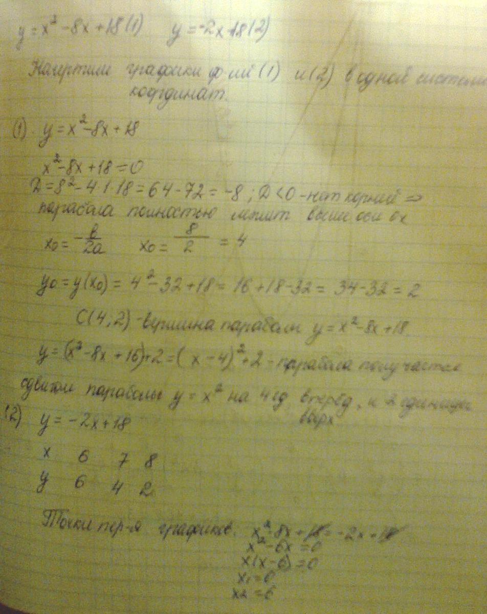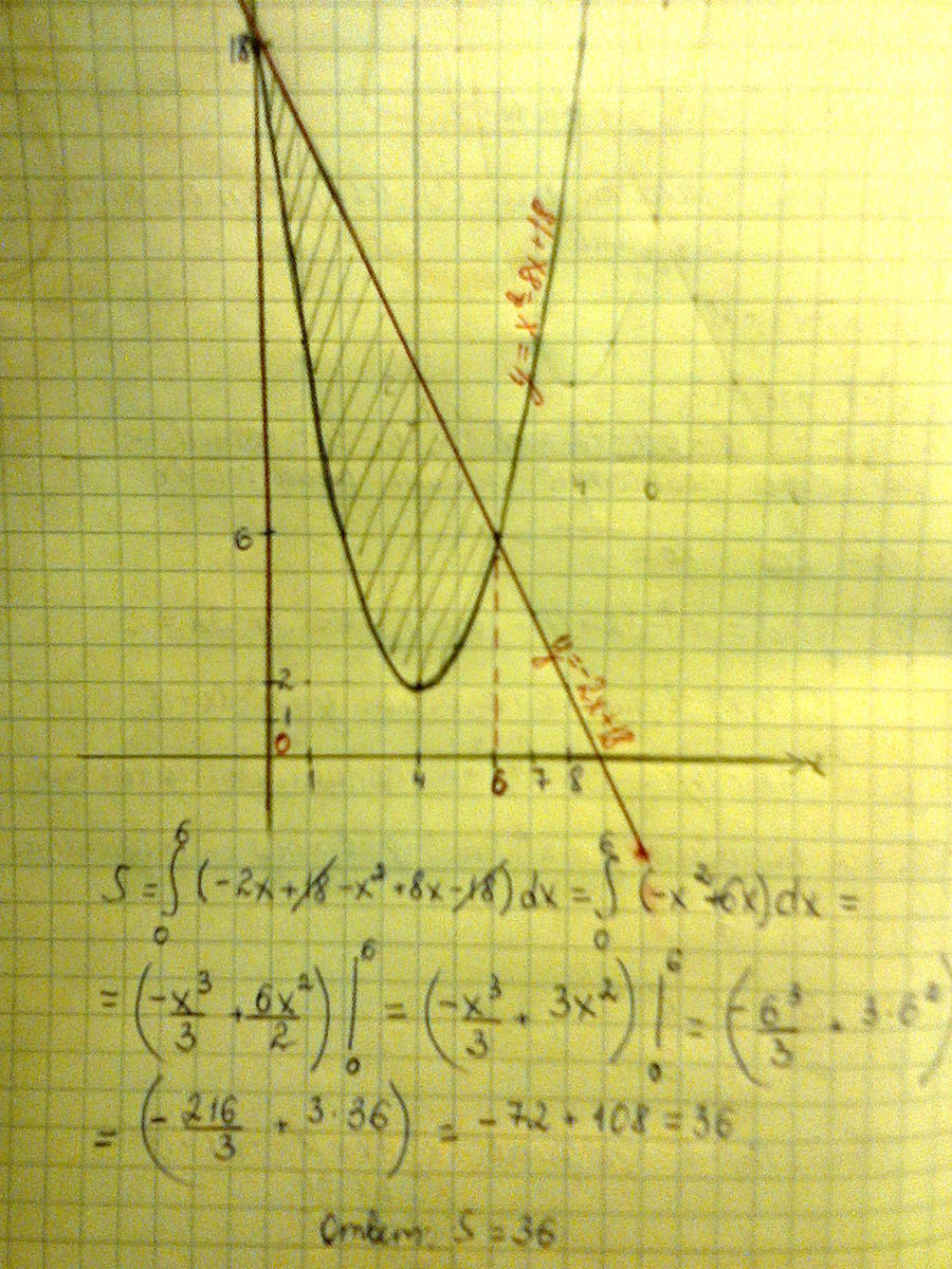 Сначала параболу и прямую чертим в одной системе координат. Находим точки их пересечения.x=0, x=6.