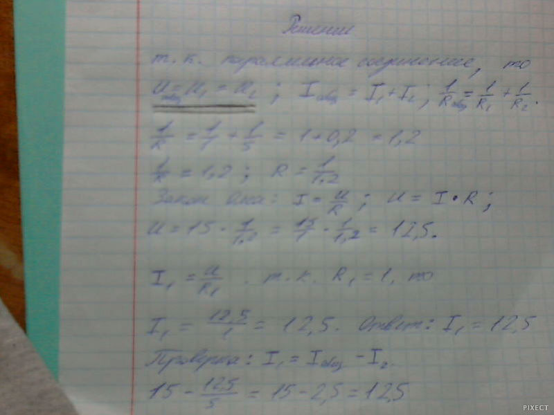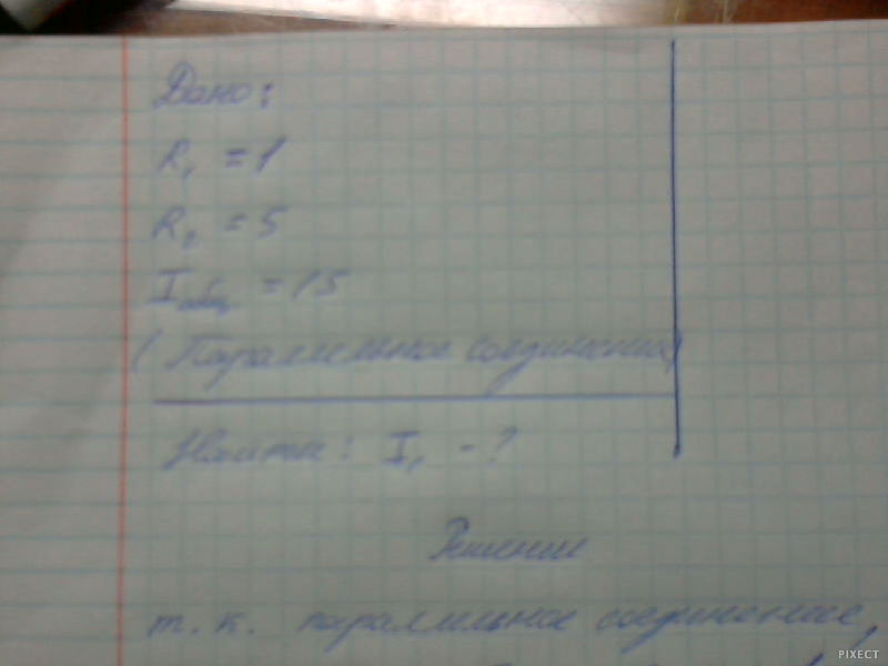 проводники сопротивлениями 1 и 5 ом соединили параллельно. определите ток в первом проводнике если в неразветвлённой части ток равен 15 а
