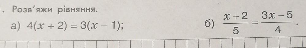 4(х+2)=5(3х-5) (тут я спростила рівняння шляхом перехресного множення)