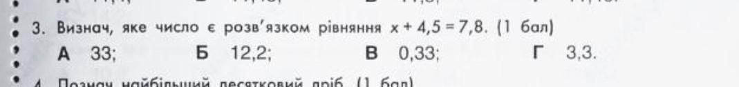 Пошаговое объяснение: x=7,8-4,5; x=3,3; 3,3+4,5=7,8