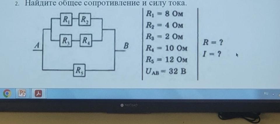 Rобщ. = 8.Ом+ 4.Ом+ 2.Ом+ 10.Ом+ 12.Ом= 36.